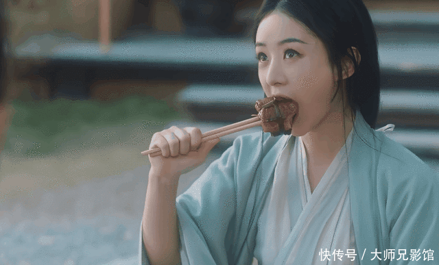 《与凤行》里的赵丽颖用筷子插起一块肥瘦相间的东坡肉大快朵颐,满嘴是油,也没见她因此胖十斤。