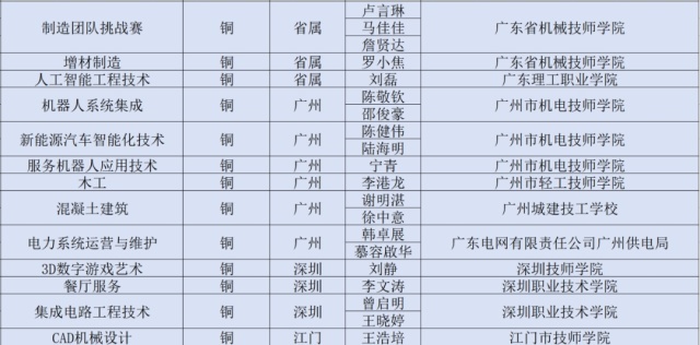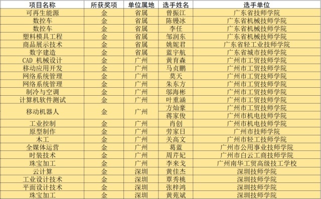 广东代表团获奖名单